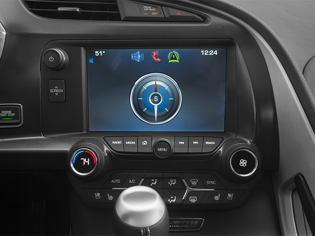 MAGNETIC SELECTIVE RIDE CONTROL, ROOF PANEL, 1-PIECE TRANSPARENT, REMOVABLE, NAVIGATION SYSTEM, WHEELS, BLACK ALUMINUM 19 x 8.5 (48.3 cm x 21.6 cm) front and 20 x 10 (50.8 cm x 25.4 cm) rear, SPOILER, REAR AND OUTSIDE MIRRORS, CARBON FLASH-PAINTED, REAR AXLE, 3.42 RATIO, LIMITED SLIP, ENGINE, 6.2L (376 CI) V8 DI (455 hp [339.3 kW] @ 6000 rpm, 460 lb-ft of torque [621.0 N-m] @ 4600 rpm) (STD), TRANSMISSION, 7-SPEED MANUAL with Active Rev Matching with Z51 performance ratios (STD), AUDIO SYSTEM, 8 DIAGONAL COLOR TOUCH SCREEN DISPLAY WITH CHEVROLET MYLINK, Bluetooth® STREAMING AUDIO FOR MUSIC AND SELECT PHONES, HANDS-FREE SMARTPHONE INTEGRATION, AM/FM STEREO WITH MP3 PLAYBACK AND RADIO DATA SYSTEM (RDS) (STD).