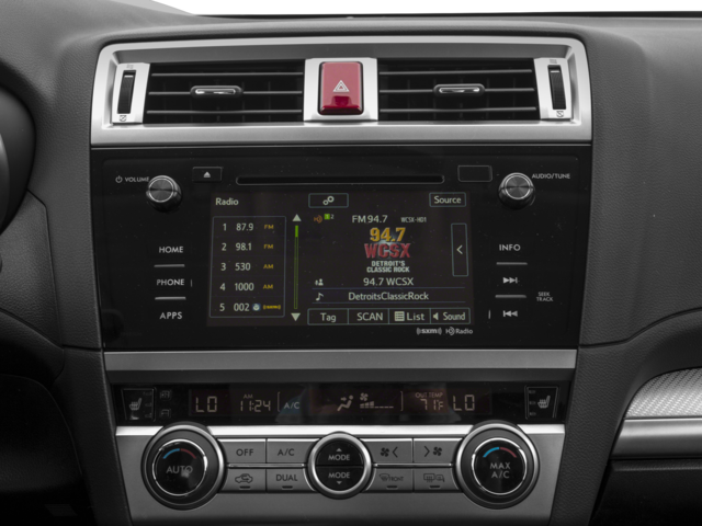 - Radio: Subaru Starlink 7.0" Multimedia Plus System -inc: AM/FM Stereo HD Radio w/single-disc CD player, MP3/WMA/CRR/RW file capability, multi touch gesture high resolution 7.0" LCD display screen, voice activated controls, Bluetooth® audio streaming connectivity, Bluetooth® hands-free phone connectivity, Bluetooth® hands-free text messaging connectivity, iPod control capability, SiriusXM all access radio (subscription required), SiriusXM travel link (subscription required), dual USB port, 3.5mm auxiliary input jack, 6 speakers, rear in glass audio antenna and roof mounted audio/satellite and connected services antenna, Aha StarLink enrollment cannot be applicable to Fleet Management Companies (FMCs) or to Commercial fleet accounts at this time.