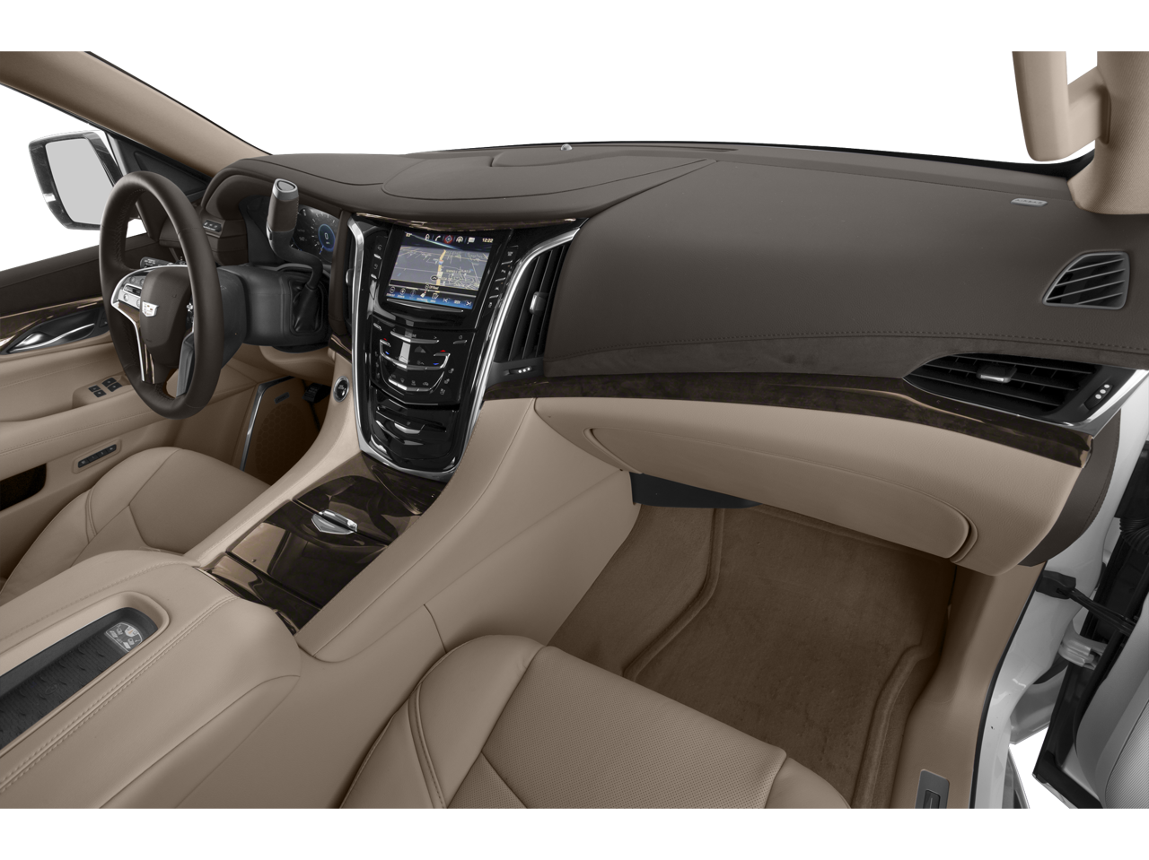 LPO, 22 (55.9 CM) 6-SPOKE ALLOY WHEELS WITH HIGH-GLOSS BLACK FINISH (includes Black lug nuts and locks), CADILLAC USER EXPERIENCE WITH EMBEDDED NAVIGATION AM/FM stereo with 8 diagonal color information display featuring touch response, haptic feedback, gesture recognition, Natural Voice Recognition, Phone Integration for Apple CarPlay® and Android Auto® capability for compatible phone, Connected Apps and Teen Driver. Five USB ports, including one in the articulating storage door/bin and auxiliary audio port (STD), ENGINE, 6.2L V8 WITH ACTIVE FUEL MANAGEMENT Spark Ignition Direct Injection (SIDI) and Variable Valve Timing (VVT), includes aluminum block construction (420 hp [313.2 kW] @ 5600 rpm, 460 lb-ft of torque [621 N-m] @ 4100 rpm) (STD), TRANSMISSION, 10-SPEED AUTOMATIC electronically controlled with overdrive, tow/haul mode and tap up/tap down shifting (STD).