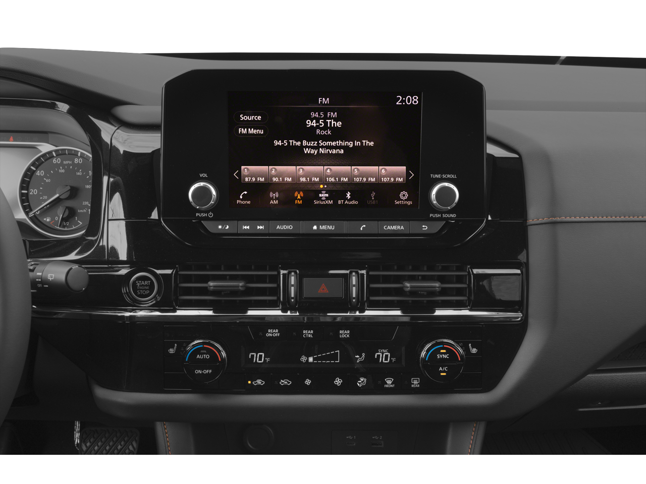 - Radio: AM/FM Audio System w/NissanConnect -inc: 6 speakers, Apple CarPlay and Android Auto, 8" color display w/multi-touch control, SiriusXM satellite radio w/advanced audio features, 2 illuminated front USB connection ports (1 type A, 1 type C) for iPod interface and other compatible devices, Bluetooth® hands-free phone system, streaming audio via Bluetooth®, hands-free text messaging assistant and Siri Eyes-Free/Google Assistant voice recognition